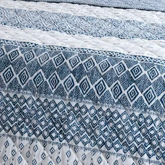 Stripes of hand painted diamonds created in a gorgeous mosaic style in fresh blue and white adorn this bedspread. Made from a soft polycotton blend, this bedspread is perfect for adding a finishing touch to your bed. Available in a choice of two sizes, coordinate with the Jax bedding for a matching look.