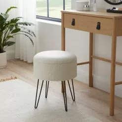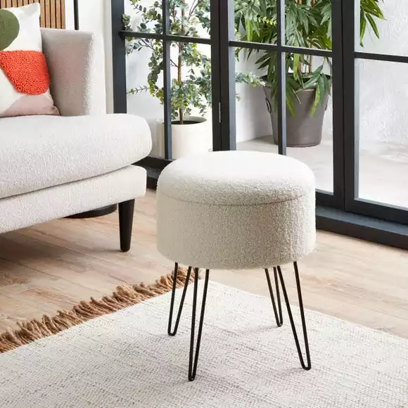 If you’re a fan of the modern aesthetic, this Sherpa Footstool is right up your alley. The sherpa upholstery has a soft touch feel and matches any colour scheme while the black metal hairpin legs are both sturdy and trendy. The lid can be flipped over to use as a table in a pinch, so you can use as a table for drinks, snacks and much more!