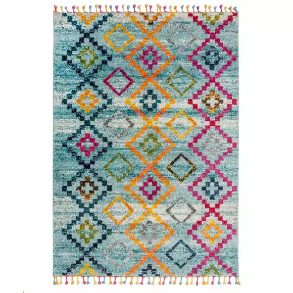 The Kasama Berber rug uses a simple geometric effect with a bold multi-coloured palette for a bohemian Berber feel. In 100% polypropylene our Kasama Berber rug pairs a soft touch pile with hard-wearing qualities, perfect for high-traffic zones. We love using this classic Berber style with bright shades to add a playful statement to living rooms and bedrooms.