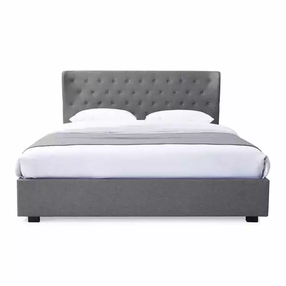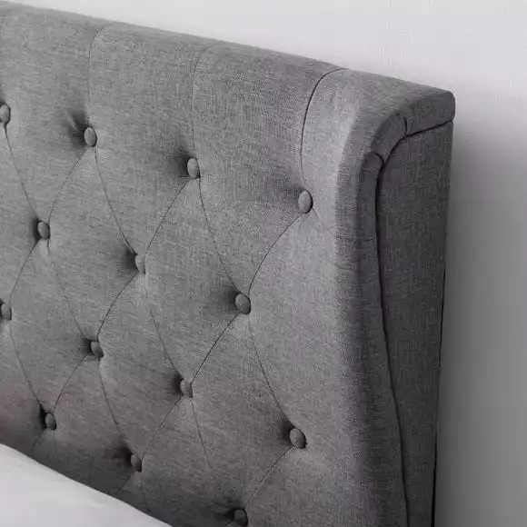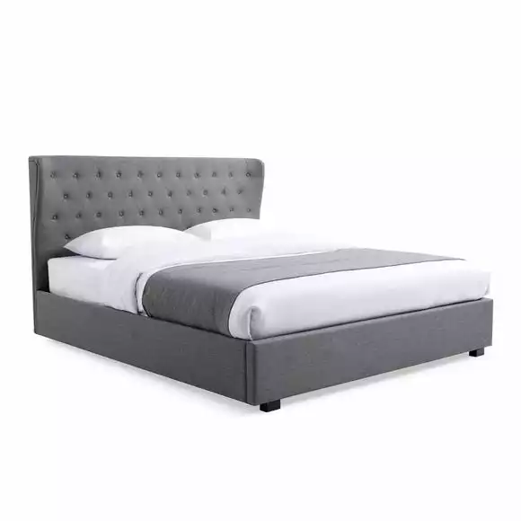A classic woven fabric makes this bed the quintessential addition to your bedroom. The buttoning detail and wing back headboard give it just enough personality, while an extra storage space under the mattress will help keep things tidy.