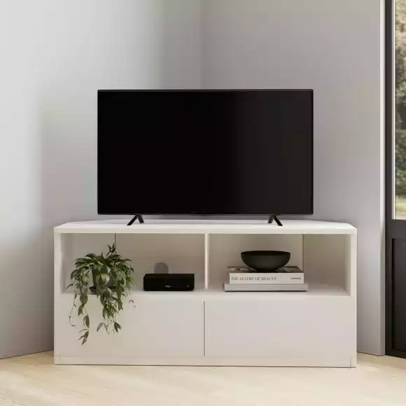 The Larson Corner TV Unit is perfect for any contemporary styled home but is well suited for any home thanks to its classic look. This TV unit features 2 open shelves and 2 drawers, providing plenty of storage space for any media consoles, remotes, and more. Making great use of otherwise awkward corners, this unit is great for smaller spaces.