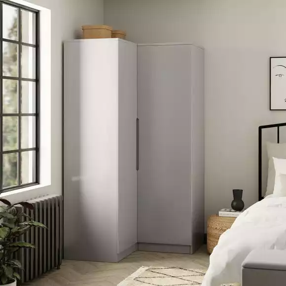 The sleek and modern Larson Corner Wardrobe is certain to brighten up any bedroom with its contemporary features. Making use of otherwise awkward corners and featuring ample storage space with hanging rail and shelves, this wardrobe will be a practical addition to your home.
