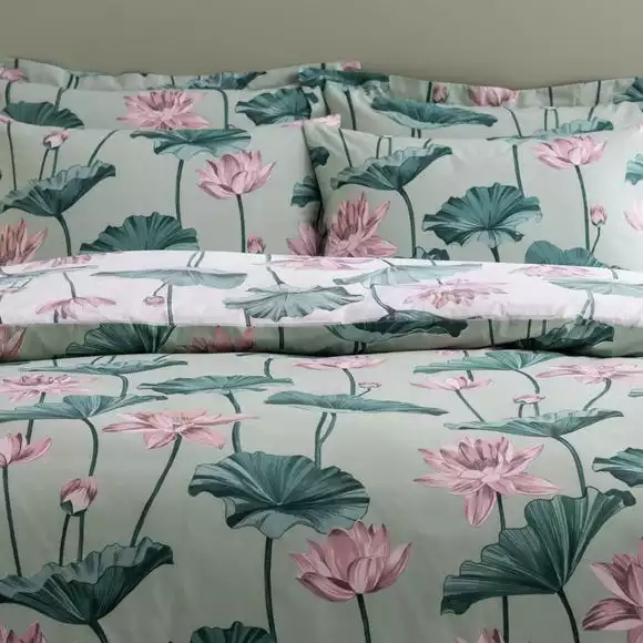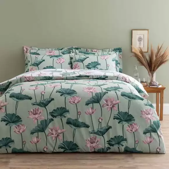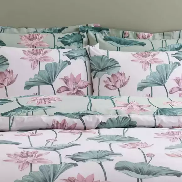 Inspired by the beautiful display inside the Waterlily House at Kew gardens, our Lilypad bedding captures the striking elegance of waterlilies. To add a sense of serenity, the tones of soft greens and pinks, working together seamlessly. And with a different colourway on the reverse, you have more styling options when it comes to bed making time. Made with Better Cotton and recycled polyester, the Lilypad duvet cover and pillowcase set is fully machine washable and can be tumble dried. Go for a coordinated look with additional oxford pillowcases available to buy separately.