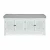 Featuring three spacious drawers with cut-out handles and woven cane design, this fully assembled storage bench offers a grey foam-filled seat cushion top and a Charcoal colourway with a lightly aged painted finish.