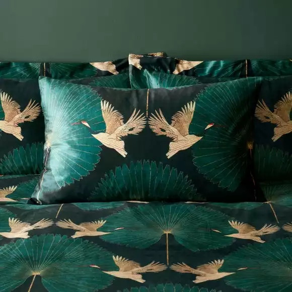 Dunelm Luxe Cranes Emerald Duvet Cover And Pillowcase Set
