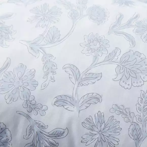 Add a touch of class into your bedroom with this beautiful Mabel duvet cover and pillowcase set. The sketchy floral design has been printed in a soft blue colourway with a geometric print reverse. Crafted from a polycotton material, the set is easy to care for and is fully machine washable. The duvet cover set has been finished with a recycled plastic button closure which helps secure the cover around the duvet whilst in use.