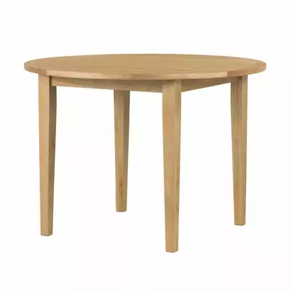 The Maddox Round Dining Table is designed with a classic look, featuring clean lines, tapered legs, and a solid oak wood and oak veneer construction with a stunning wood grain pattern. Seating up to 4 people, this dining table is perfect for smaller families or spaces due to its compact size. The Maddox dining table pairs perfectly with the coordinating items within the Maddox range.