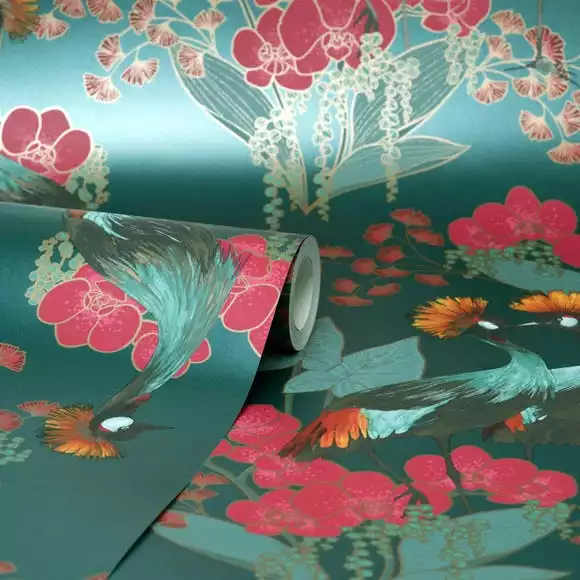 The Mariba wallpaper is ideal for adding a beautiful touch to your home. Beasting a colourful bird and floral design, this wallpaper will look stunning in any home with the emerald colourway.