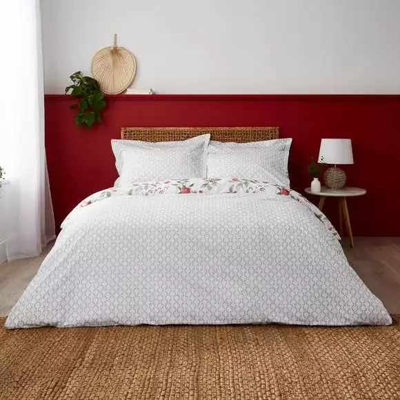 Bring the elegance of a beautiful floral garden into your home with this stunning Matilda duvet cover and pillowcase set. For a quick style change, flip the duvet cover cover to reveal a green trellis design. Crafted from a polycotton material, the set is easy to care for and is fully machine washable. The duvet cover set has been finished with a recycled plastic button closure which helps secure the cover around the duvet whilst in use.