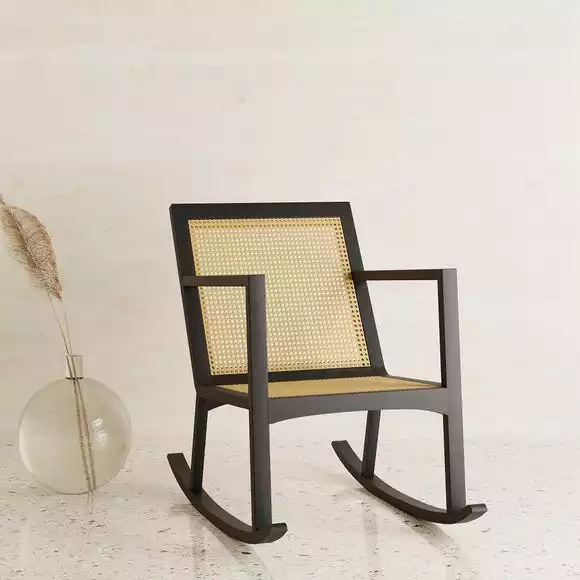 With its stunning natural rattan seat and backrest, paired with a contrasting black painted rubberwood frame, the Miki Cane Rocking Chair would make a trendy addition to any home decor.