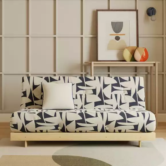 Convert your living room into a bedroom in minutes, this futon is the perfect solution for anyone looking for a space saving and multifunctional piece of furniture. Designed to fold out from seat to bed, this futon provides a comfortable place to binge your favbourite Netflix series or for your guests to stay over while also providing additional seating when not in use. Constructed from solid pine and finished with a fun, modern pattern makes this piece not only functional but stylish as well!