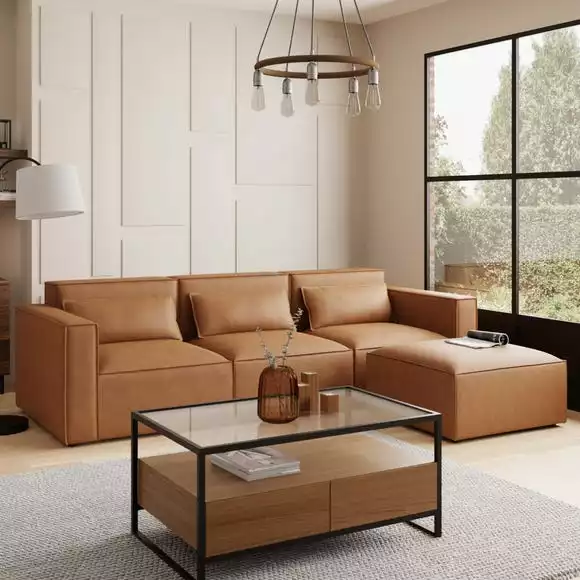 This stylish, contemporary footstool is the perfect addition to any space and doubles up as extra seating. This Modular Arne Footstool is also part of the Modular Arne set and can be added on as a chaise configuration with other pieces in the set. This timeless piece is completed with faux leather upholstery and is foam and fibre-filled for comfort.