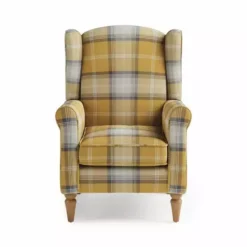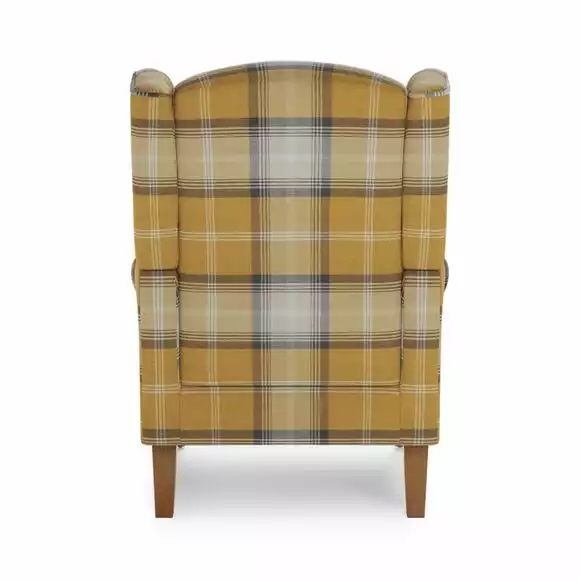 Take a rest in the timeless Oswald armchair, offering a comfortable sit thanks to the sumptuous foam and fibre filled cushions and supportive pocket sprung seat. Upholstered in a checked, smooth woven fabric, this stunning part assembly armchair boasts a classic wingback design, complete with scrolled arms, piped edge detailing and sturdy, oak finished wooden legs.