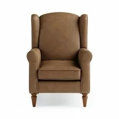 Designed with comfort in mind, the Oswald armchair is upholstered in a distressed faux leather design, complete with foam and fibre filled cushions, and a pocket sprung seat for additional support. With a traditional wingback design, this part assembly armchair features scrolled arms and oak finished wooden legs. This classic armchair is also available in a range of different colours and styles and offers easy assembly; just attach the feet and you’re ready to relax.