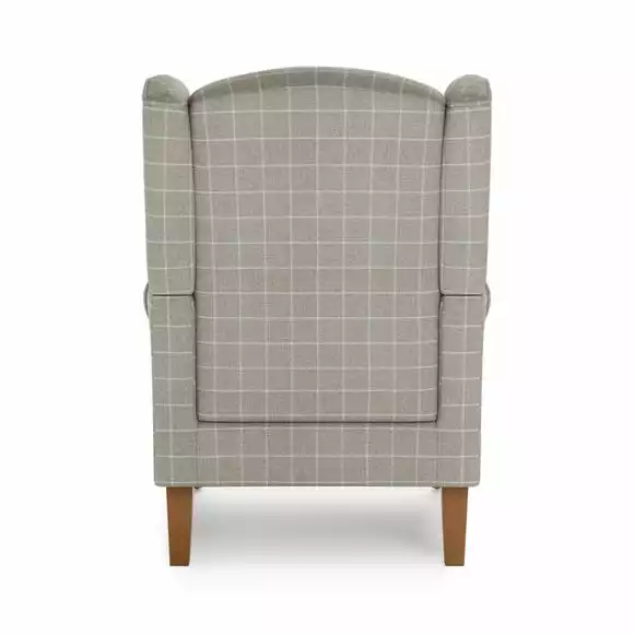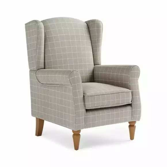 Designed with comfort in mind, the Oswald armchair is upholstered in a smooth, window pane checked, woven fabric in a choice of natural and grey colourways and crafted with foam and fibre filled cushions. The pocket sprung seat and high back provide plenty of additional support, whilst the classic wingback design with scrolled arms, piped edge detailing and sturdy, oak finished wooden legs complete the look. The Oswald armchair is also available in a range of different colours, fabrics and sizes and offers easy assembly; just attach the feet and you’re ready to relax.