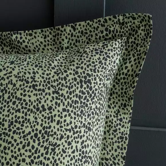 The oxford pillowcase from our Paradise Spot bedding range is the perfect coordinate with its condensed animal print design in olive tones. The wide oxford edge on this pillowcase lets you layer your pillows in style. Made with Better Cotton and recycled polyester, the pillowcase is easy to care for, making it perfect for busy lives. Check out our coordinating Paradise Spot and Paradise Cheetah products to transform your room.