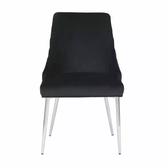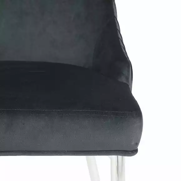 Upholstered in a luxuriously soft velvet fabric with a delicate pleated back, the Peyton chair would add a touch of modern luxury styling to any room. The grey velvet upholstery is perfectly complemented by the sleek chrome finished metal legs, whilst the foam padded seat and backrest provide luxurious comfort.