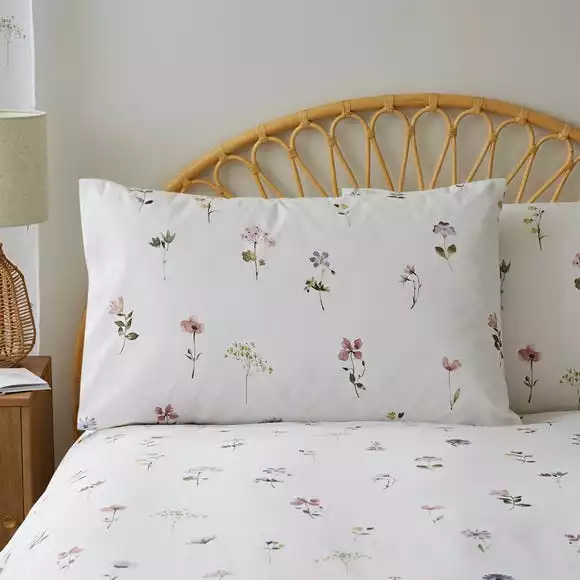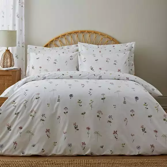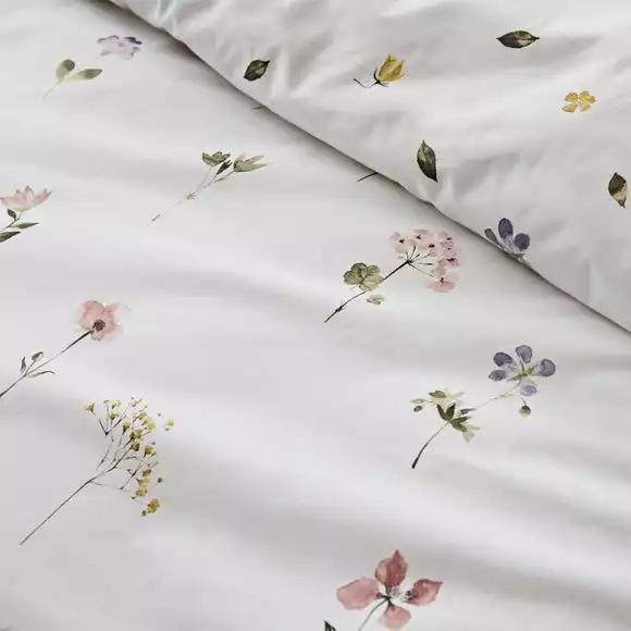 Dunelm Pressed Floral White Duvet Cover And Pillowcase Set