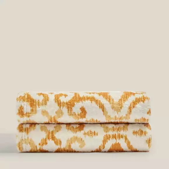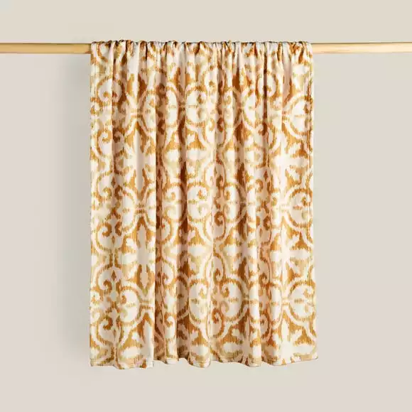 Dunelm Printed Fleece Sitara 130x160cm Throw Old Gold