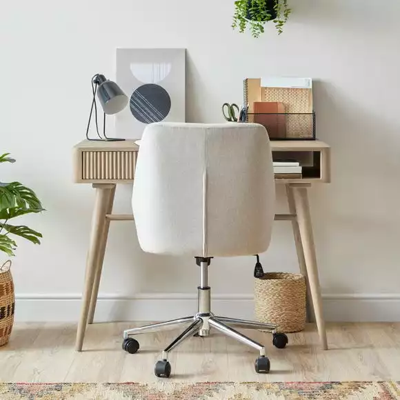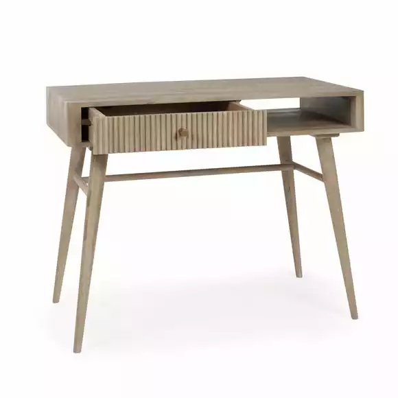 Perfect for any home office space, the Priya desk features long, slender tapered legs, and a large work surface. This desk also boasts a single spacious drawer with wooden runners, as well as an open shelf, providing plenty of useful storage space for your office supplies.
