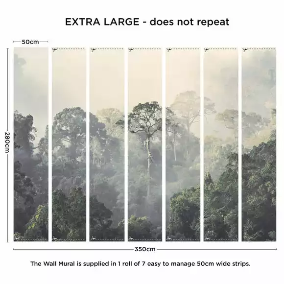 Exclusive to Dunelm, this beautifully atmospheric rainforest mural is ideal for livening up your walls and bringing a touch of nature into your home. Designed in natural greens and calm greys, this stunning wall art perfectly complements a wide range of home decors. Crafted from high quality non-woven paper, this mural is easily applied by pasting the wall and can be sponge cleaned for easy maintenance.