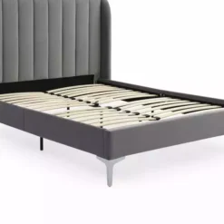 With a high pleated headboard fit for a queen or king, this bed frame is not just a place to rest, it’s a statement piece that will elevate your bedroom to new levels of luxury. The velvet upholstered finish feels as soft as it looks, making it the perfect place to snuggle up and relax.