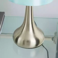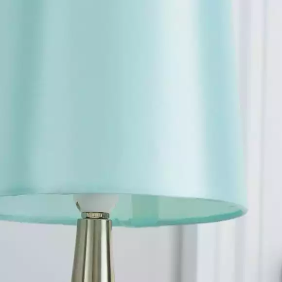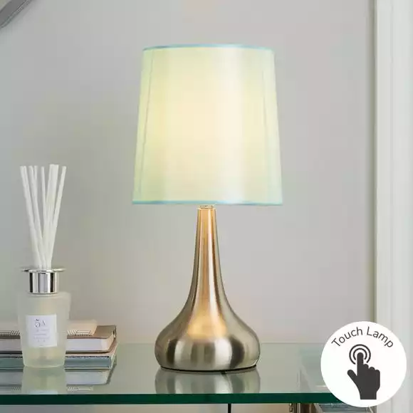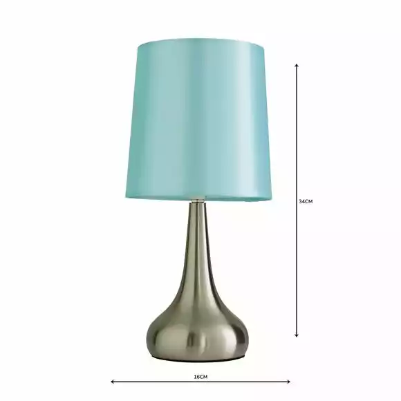 Make a statement to your existing interior with this Duck Egg Rimini touch lamp, featuring a sleek satin chrome base and faux silk lampshade. Simple to use with the touch of the base, this touch lamp features three different levels of brightness to choose from.