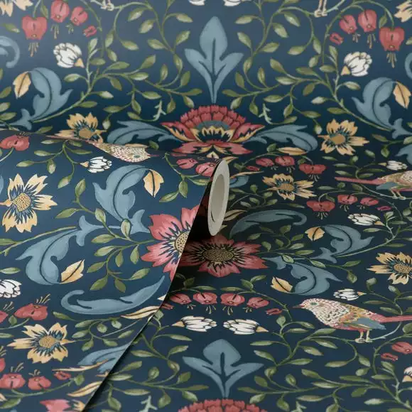 The Ruskin Wallpaper adds visual interest to any room, this wallpaper features a stunning floral and bird design. Easily apply this wallpaper by pasting the paper!
