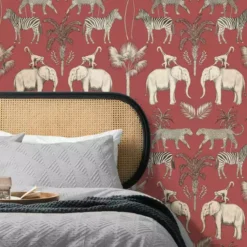 This gorgeous wallpaper features a safari-inspired design, showcasing elephants, zebras, and more. Easily apply this wallpaper by pasting the paper!
