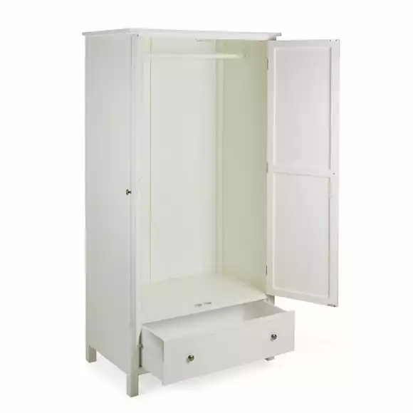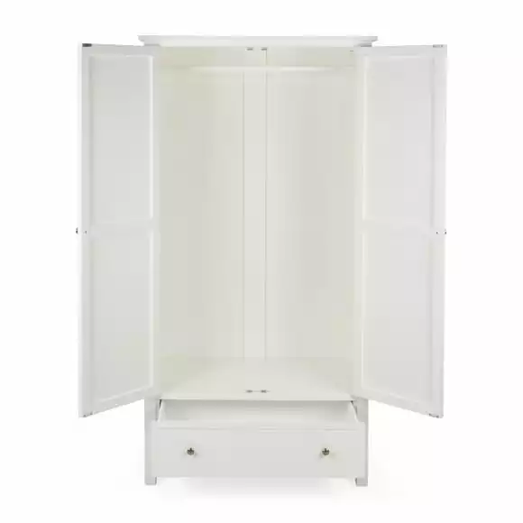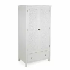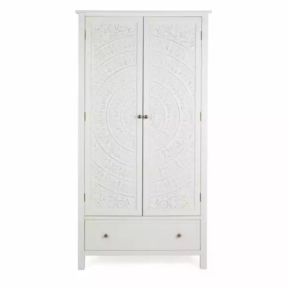The Samira White Double Wardrobe is a stunning piece to include in any bedroom. Featuring a delicately detailed, carved out wooden front, this wardrobe provides both style and practicality without compromising on either. This carved design is brought out with the stylish paint finish, which complements the beautifully finished brushed metal handles. Finished in a timeless white colourway, the Samira Double Wardrobe features a ample room to hang up your clothes and a drawer for extra storage space.