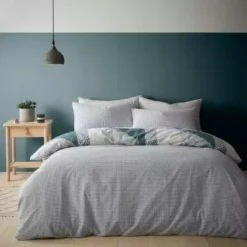 A bold green and blue geometric design fills the front of this duvet cover set. A small check design reverse means that you can switch up your bed style with ease. Crafted from a polycotton material, the set is easy to care for and is fully machine washable. The duvet cover set has been finished with a button closure which helps secure the cover around the duvet whilst in use.
