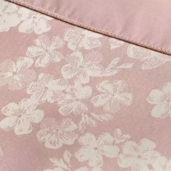 Transform your bedroom into a tranquil sanctuary with this beautiful blossom duvet cover and pillowcase set. In a gorgeous blush colourway this set features an exquisite jacquard design with a neutral cuff and sumptuous rope corded trim detail for that perfect finishing touch. Crafted from a soft polycotton blend that’ll soothe you to sleep, with coordinating curtains and bedroom accessories available to complete the look.