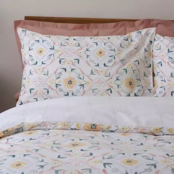 Add a stunning floral touch to your bedroom with our Sofia Floral duvet cover and pillowcase set, made from high quality and soft cotton, which has been crafted with an anti-allergy finish. The reversible design allows you to enjoy two beautiful prints in one bedding set, so you can flip it over whenever you desire. With breathable cotton, this bedding set allows you to have a comfortable and peaceful night sleep. This duvet cover and pillowcase set is finished with a secure button closure and is complete with standard pillowcase(s). Available in a range of sizes.