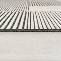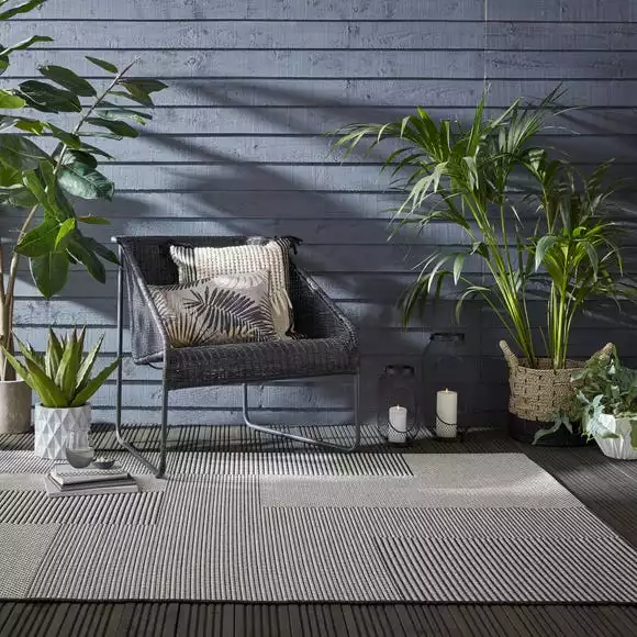 Add texture to your indoor and outdoor spaces with the Sorrento design. Pairing monochromatic shades with a unique block design. Our Indoor/Outdoor collections use a 100% polypropylene composition to make our designs perfect for both indoor and outdoor living. Built for the outdoors with weather-proof and UV-resistant qualities, don’t worry about any mess, the Sorrento rug is stain-resistant and easy to clean with a simple hose down. The low-profile composition is perfect for sitting under furniture. We love using outdoor rugs to create social outdoor zones or add comfort underfoot in busy areas such as the kitchen.