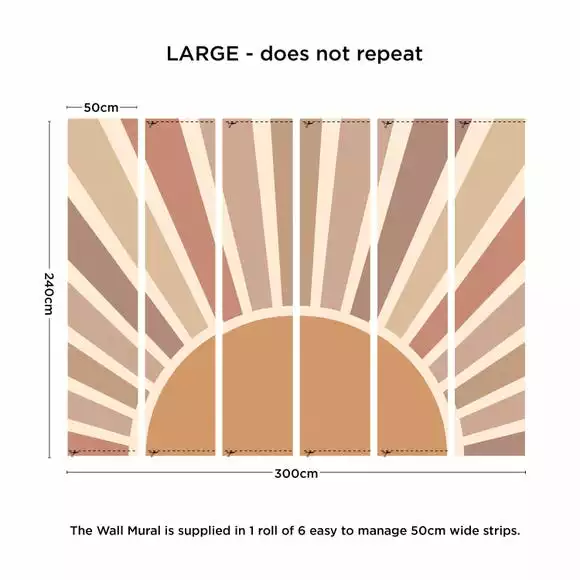 Create a stunning feature wall with this beautoful abstract sun designed mural, perfect to liven up any space. Easy to hang, you are required to paste the wall and apply the paper. This application method is time saving compared to traditional wallpapering methods.