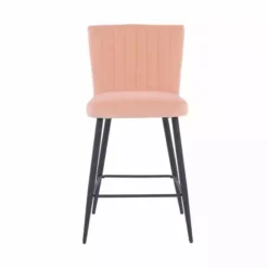 The elegant design of the Taylor Bar Stool is sure to bring a classy touch to easily elevate any dining space or kitchen island. The bar stool is upholstered in a luxurious, soft velvet fabric with bold, powder coated, metal legs. The stool is generously padded, with a cocktail style back for maximum comfort and features a ribbed stitched detailing on the back.