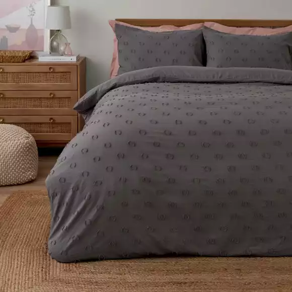 Dunelm Thyra Tufted Grey Spot Duvet Cover And Pillowcase Set