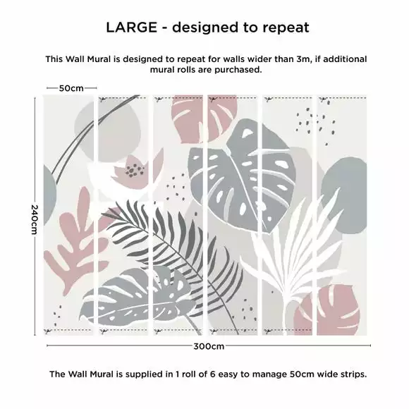This mural has been designed to repeat for walls wider than 3m if additional rolls are purchased.