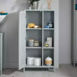 The perfect console unit for your bathroom, the Tuscany features a modern and handle less slatted door design with multiple shelves. It is easy to assemble and boasts ample storage space to tidy away clutter, keeping your bathroom neat and organised. This grey console unit is an ideal bathroom storage solution that will add a touch of style to your space.