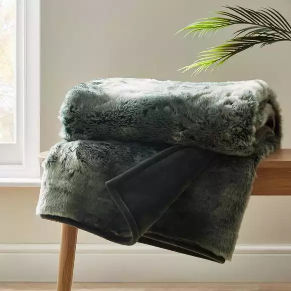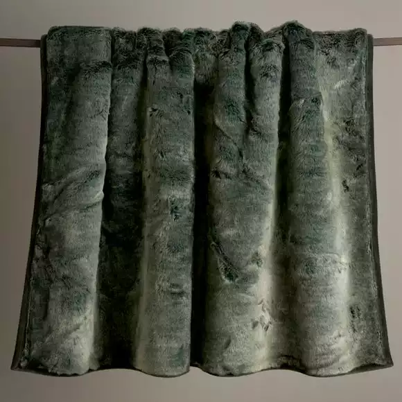 Designed with a faux fur front and smooth shimmering reverse, this stunning throw will add a touch of style to any room of the house. In a stylish bottle green colour this throw is perfect for creating a cosy, autumnal atmosphere in your home.