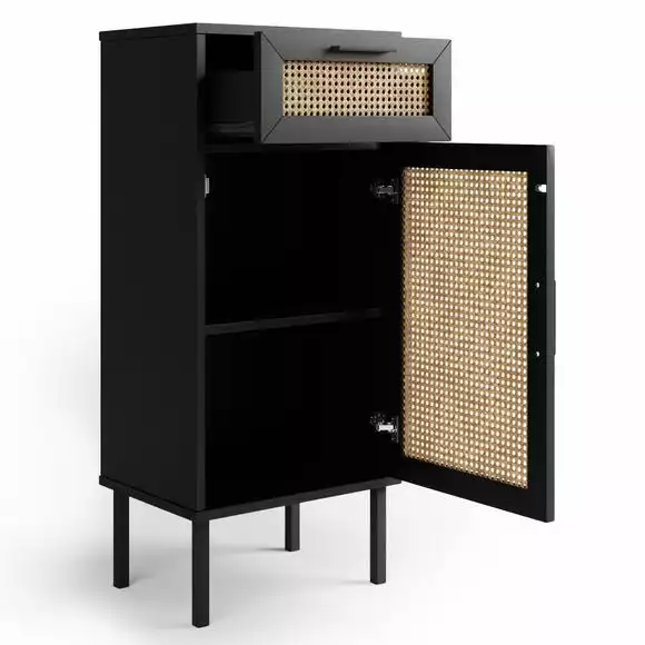 Stylish, sleek, practical, what more could you ask for? The Winslow medium cabinet ticks all boxes and is the perfect addition to any contemporary or global-inspired bathroom space. The on-trend natural rattan front doors paired with the black wood effect creates a striking look, while the drawer and cabinet space provides much needed storage solutions to keep your bathroom clutter-free.