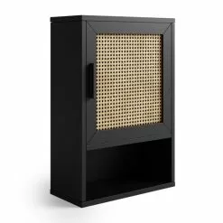 Complete or renew the look of your bathroom with the Winslow wall cabinet. This trendy and stylish design doesn’t only look good, but it’s a practical and space saving solution as well. Designed with a black wood effect surround and natural rattan fronts, the Winslow comes a cabinet and shelving space where you’ll be able to store everything you need to have close to hand.