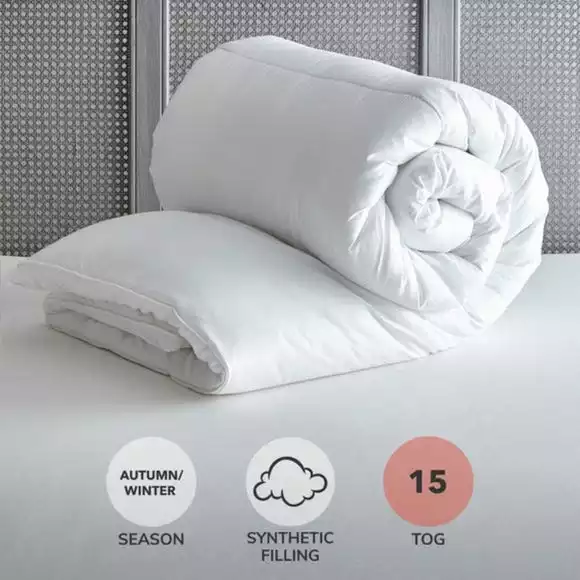 Stay ‘wonderfully warm’ with this 15 tog duvet, perfect for the winter months. The duvet comes filled with recycled polyester perfect for keeping you warm. The filling is contained in a soft polyester cover making it soft to sleep under.