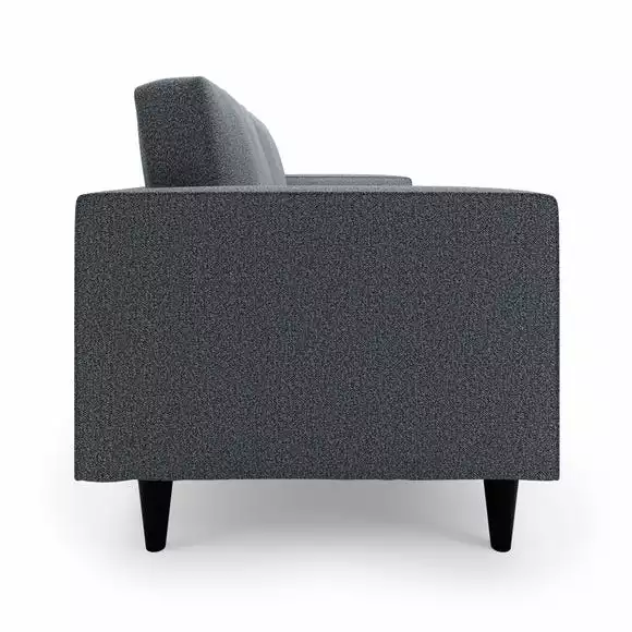 Bring some modern retro styling to your living room with the stylish Zoe 3 Seater Sofa. Finished in a trendy light grey colour, this sofa features soft and durable boucle fabric upholstery, styled with a gorgeous tufted seat cushion, piped edge detailing and stylish tapered solid wood legs. As stylish as it is comfortable, the Zoe is the perfect place to sit back and unwind, featuring a foam filled, sprung seat and fibre filled back cushions, as well as two matching bolster cushions. This sofa has non-reversible back cushions and a fixed seat cushion.