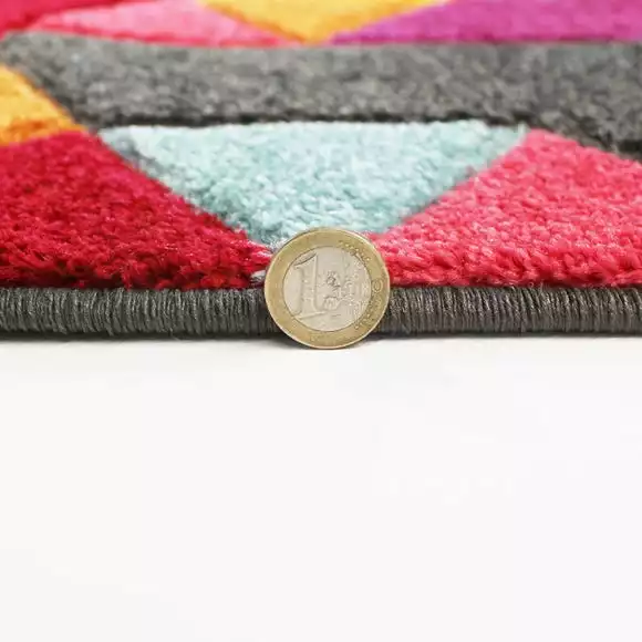 Beautifully created in a geometric design, this ravishing runner features a bright and bold colourway. Crafted with a soft short pile type, this trendy rug provides minimal shedding properties and utmost comfort.