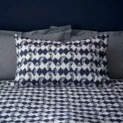 Our Elements Cover duvet cover set features a blue and white geometric print that will be great for giving your bed a fresh look. The reverse allows for a quick style change as it features a thin striped design. Crafted from a polycotton material, the set is easy to care for and is fully machine washable. The duvet cover set has been finished with a button closure which helps secure the cover around the duvet whilst in use. For a layered hotel look, pair the duvet cover set with the coordinating Elements Cover Oxford Pillowcase.