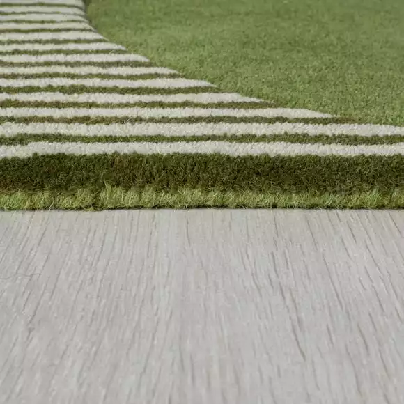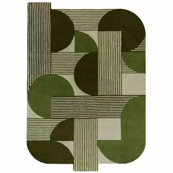 Make a statement with this on trend, contemporary shaped Elements Viggo Wool Rug. Made in India from 100% hand tufted wool, this bold design in natural and green tones will certainly be a feature in any room. It maximises warmth and has sound insulating qualities as well as being a long lasting natural fibre product.