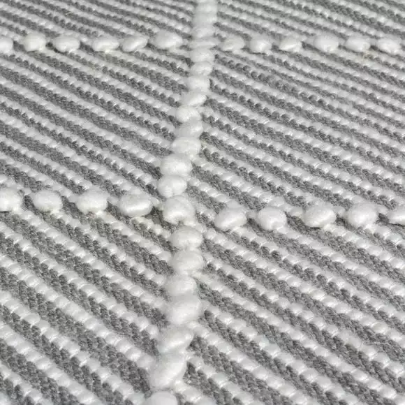 Inspired by Berber style geometrics, the Carla rug pairs a white tufted loop pattern with a soft-grey surface. Handcrafted by skilled rug artisans, ideal for adding a unique touch to your space. The soft, textured surface is the ideal choice for cosy indoors areas, perfect for living and dining spaces.