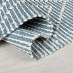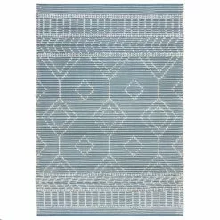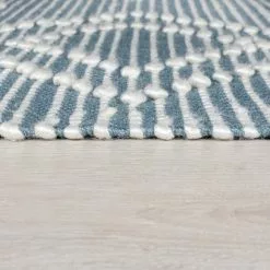 Inspired by Berber style geometrics, the Robyn rug pairs a white tufted loop pattern with a calming blue surface. Handcrafted by skilled rug artisans, the Robyn is ideal for adding a unique touch to your space. The soft, textured surface is the ideal choice for cosy indoors areas, perfect for living and dining spaces.