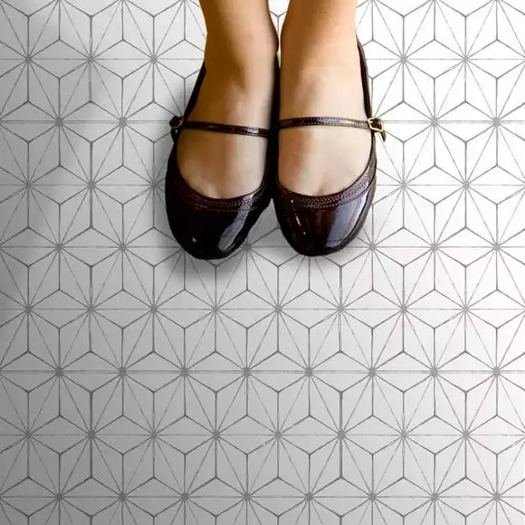 Featuring a simple white and grey geometric print designed to suit a range of decors, these Floorpops floor tiles have been crafted with a handy peel and stick design. Made from virgin vinyl with a permanent adhesive and complete with a water resistant finish, these peel and stick panels bring the durability and easy to clean properties of real floor tiles but are much easier and quicker to apply to your floor, requiring no grout or special tools. Ideal for kitchens or dining areas, these tiles can be easily sponge cleaned due to their water resistant properties.